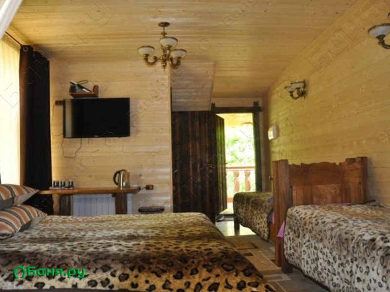 Респ. Адыгея, Майкопский р-н, ст. Даховская, ул. Мира, 26аПервый этаж сауны занимает сама парная, вместительный бассейн для экстремального купания в холодной воде, комната для умывания, просторный холл для релаксации. ТВ со спутниковой антенной поможет расслабиться во время просмотра любимой программы. Простыни и банный веник выдаются по желанию. Весь второй этаж занимают комфортабельные номера люкс со всеми удобствами. Великолепная проектировка здания сразу дает о себе знать. После горячей парной здесь так приятно расслабиться с чашкой ароматного чая, пообщаться в компании друзей или семейном кругу. Красивый интерьер всецело располагает отдыху.