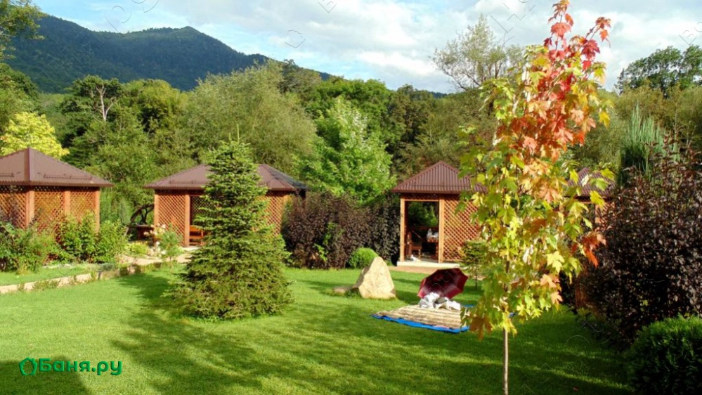 Адыгея, Майкопский р-н, пос. Гузерипль, ул.Лесная, 41 мУ подножия Главного Кавказского хребта, на высоте 670 метров над уровнем моря, на берегу реки Белая, уютно расположился маленький красивый поселок - Гузерипль. Туристы круглый год стремятся в эти живописные места, чтобы насладиться великолепием гор, покрытых дубовыми и пихтовыми лесами.После долгих прогулок всегда хочется отдохнуть, восстановить силы, пообщаться с друзьями за чашечкой травяного чая и попариться в баньке. Для этих целей великолепно подходят наши баня и хаммам. Вы не только очистите тело, но также снимите стресс, расслабитесь, приятно и полезно проведёте время. Заряд бодрости, лёгкость и хорошее настроение гарантируются!