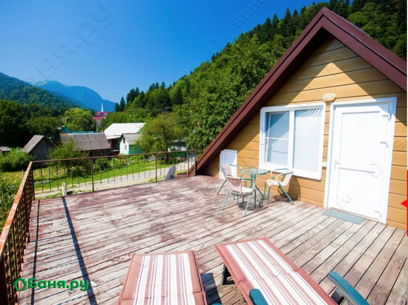 Адыгея, Майкопский р-н, пос. Гузерипль, ул.Лесная, 41 мВ уютной бане с комфортом могут расположиться более 10 человек. Любители контрастных температур по-достоинству оценят большой дубовый ушат с освежающей ледяной водой, подающейся напрямую из скважины. В комнате отдыха можно посмотреть ТВ, поиграть в настольные игры и насладиться ароматным травяным чаем. Это место прекрасно подойдёт как для романтического вечера, так и для большой весёлой компании.