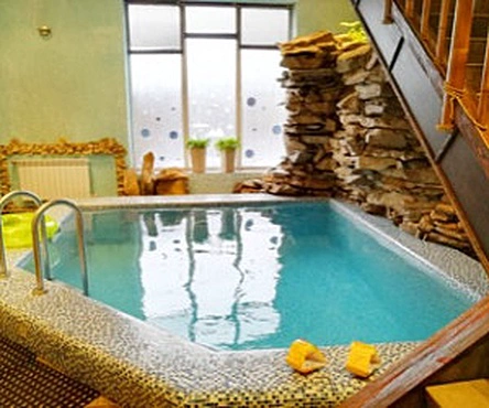 Семейная сауна с большим залом для отдыха и бассейном для прекрасного времяпрепровождения.