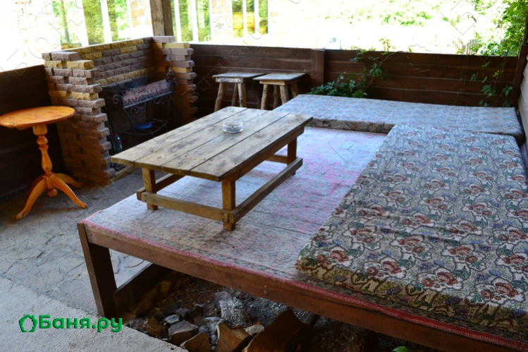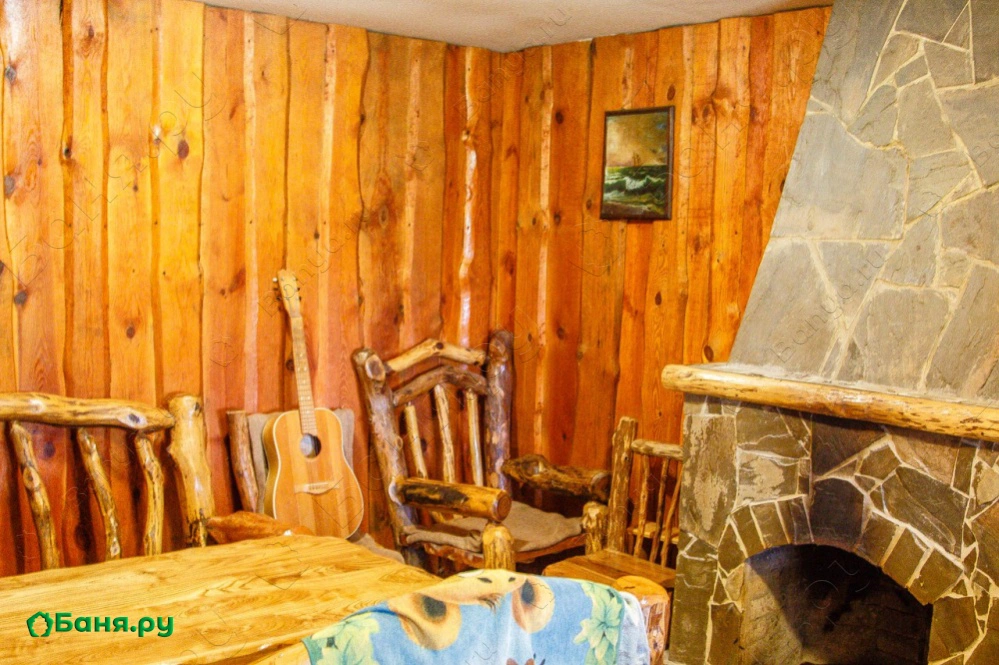 Русская баня с каминным залом и купелью + Терраса с топчаном и мангалом.