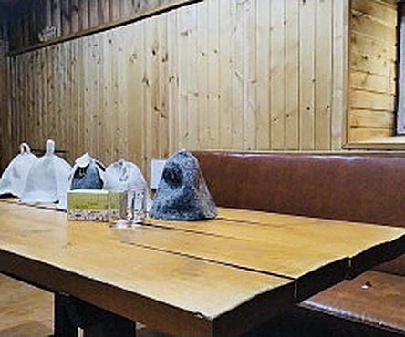 В русской бане на дровах находится парилка с двумя уровнями полок, комната отдыха, всё для чаепития, душевая, обливное ведро