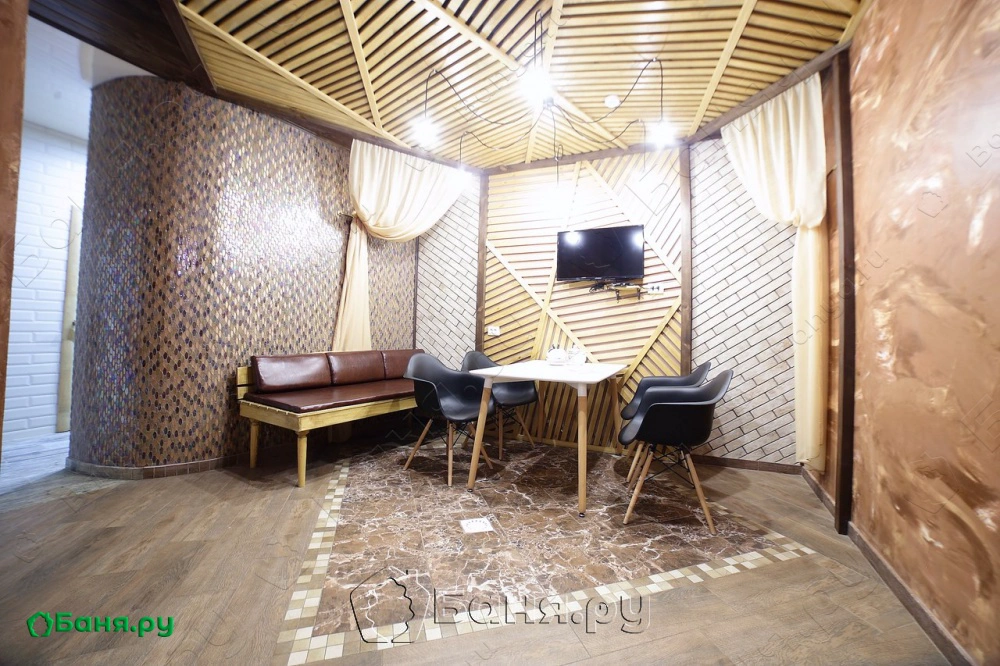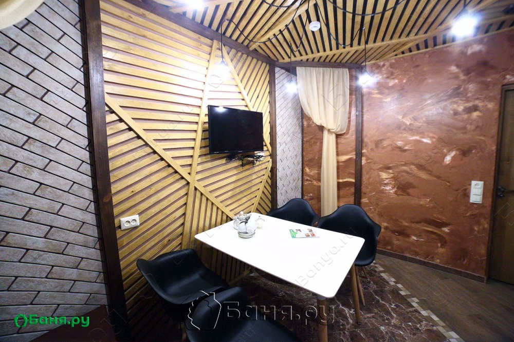 Новейший номер бани Лофт обязан своим названием одноименному стилю интерьера, зародившемуся в 50-х годах прошлого века в Америке. Основной признак стиля – схожесть с заброшенной мастерской или фабрикой, приспособленной под жилое помещение. Для него характерны отсутствие декора на стенах и текстиля на окнах, минимум мебели, строгая цветовая гамма. В номере «Лофт» вы найдете обеденный стол «советских времен из закрывшейся на соседней улице столовой», аналогичные ему стулья, свисающие с потолка на цепях светильники, аскетичный диван. Своеобразие, на любителя, дизайна не отменяет по-настоящему добротного отдыха в «Лофте». Горячая сауна, душевая, ледяная купель, обливная кадушка, чай с дымком – все здесь имеется для восстановления утраченных вами сил и здоровья. И свежего взгляда на мир.
