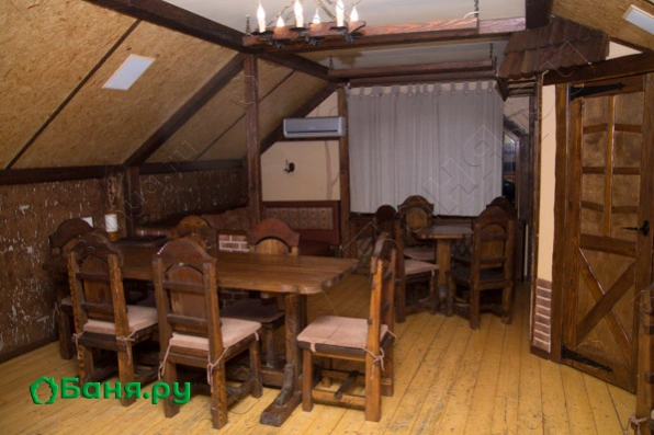 Эта сауна занимает 2 этажа, она наиболее удобна для корпоративных и дружеских встреч.