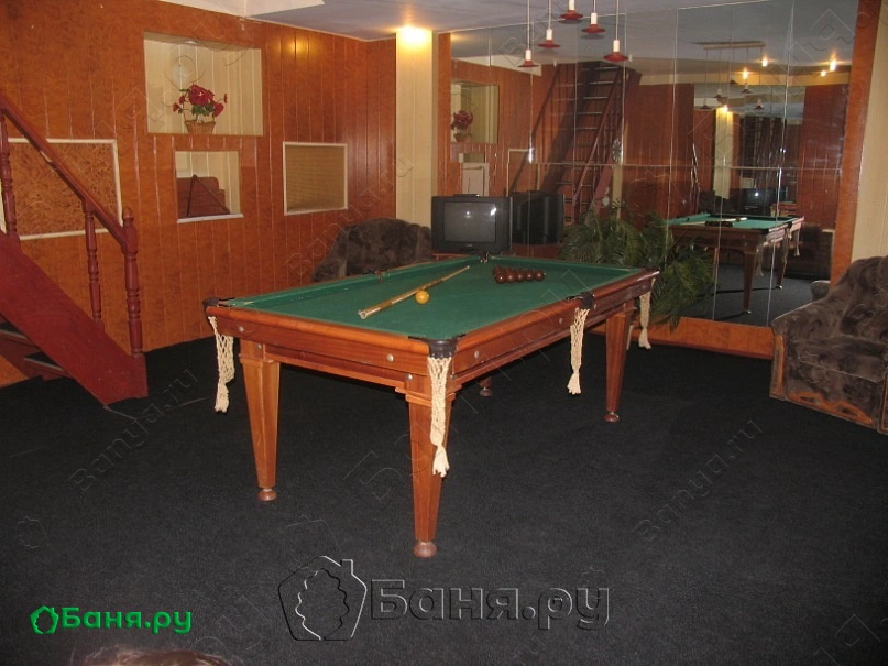 В специально обустроенной бильярдной, из которой лестница ведет на второй этаж, наши азартные гости могут организовать целую игру.