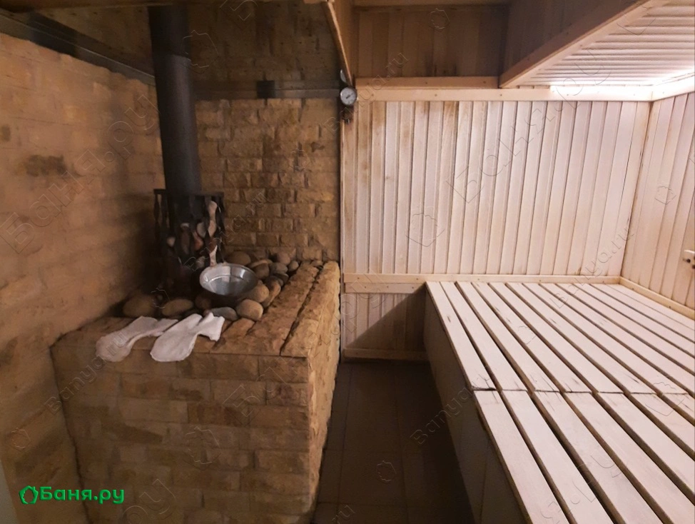 печи в этих баньках на озере вмещают в себя более тонны речных камней
