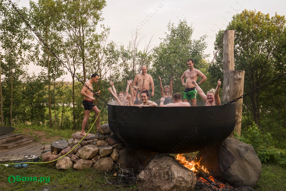 Тверская обл., Калининский р-н, д. БакшеевоВ качестве альтернативы предлагается баня в чане на открытом воздухе. Второй вид не так распространен, но он, несомненно, достоин того, чтобы его опробовать. Диаметр нашего чана - 3,2 метра (чанов такого размера нет больше нигде!), объем воды - 3600 литров, по вместимости рассчитан на компанию до 20 человек.