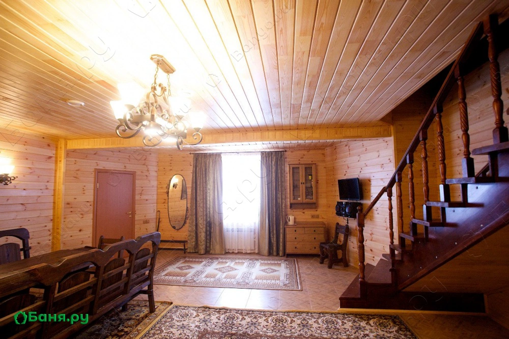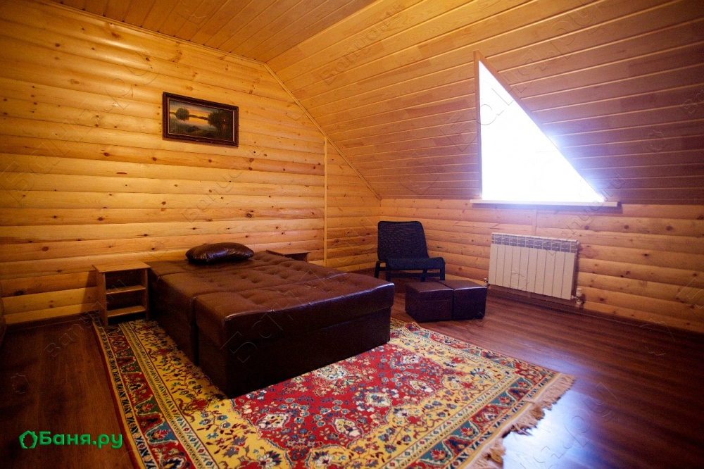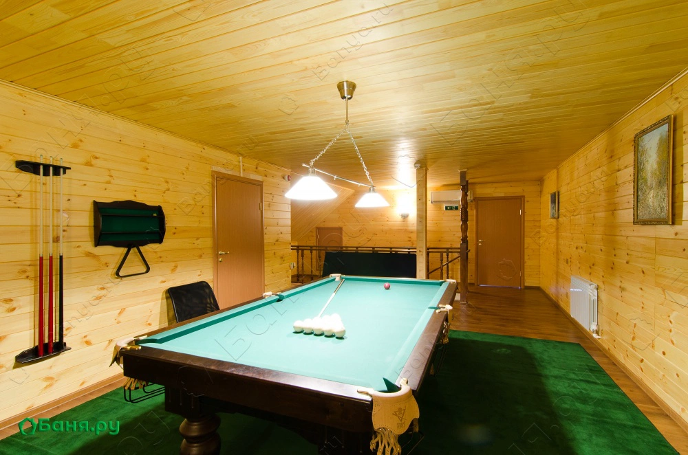 Тюменская обл., ул. Цветочная, 1АБаня №2 особенная и больше похожа на загородный дом с банкетной комнатой и парилкой на первом этаже, двумя спальнями и восьмифутовым столом для бильярда на втором. Сюда нужно заселяться на весь день большой дружной компанией. Этот чудесный дом видел в своих стенах большие семьи, веселые коллективы, мальчишники и девичники, но чаще всего здесь "отпариваются" после весёлых свадеб.