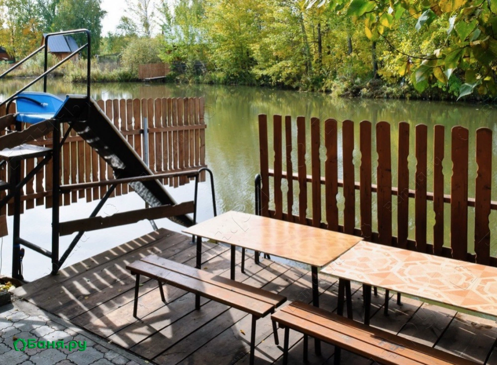2-х ярусное здание с 3 комнатами отдыха, парная, моечная, большой зал с камином, теплые полы, горка в озеро.