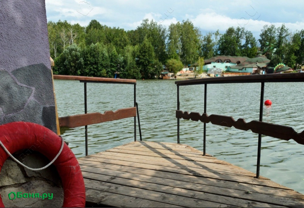 2-х этажное здание с 2 комнатами отдыха, парная, моечная, на втором этаже небольшой зал, теплые полы, керамическая ванна, выход в озеро.