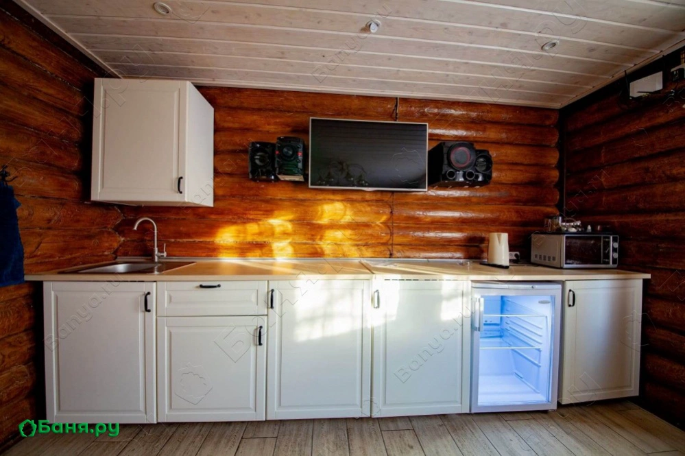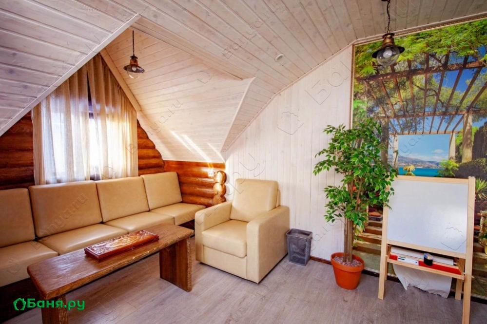 С друзьями можно посидеть в просторной гостиной, которая, кстати, совмещена с полностью оборудованной кухней (посуда, приборы - все есть). Для развлечений предусмотрены: караоке, русский бильярд, настольные игры, гитара, светомузыка. Любителям же более спокойного отдыха придутся по вкусу наши комнаты отдыха с кроватями.