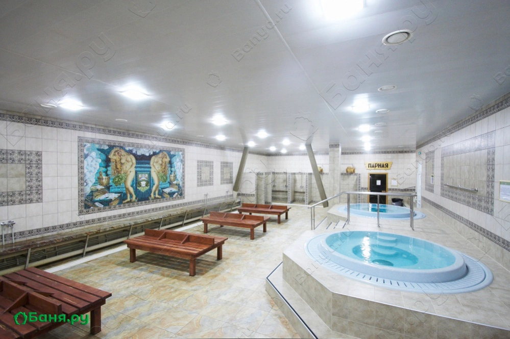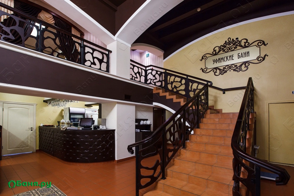 г. Уфа, ул. Бессонова, 29/1Просторный общий зал «Уфимских бань», рассчитанный на посещение 50 человек одновременно, украшен картинами и оригинальной художественной росписью – изображениями исторических видов Уфы начала XIX века.Гости располагаются в комфортных кожаных креслах, имеющих закрывающееся отделение для личных вещей. Для ценных вещей предусмотрены индивидуальные ячейки на стойке администрации.Несомненным достоинством «Уфимских бань» является ее современно оборудованная парная объемом более 230 м3.Свежий и обогащенный кислородом воздух подается в парную современной системой вентиляции. Кроме того, парная моется и проветривается нашими парильщиками каждый час.
