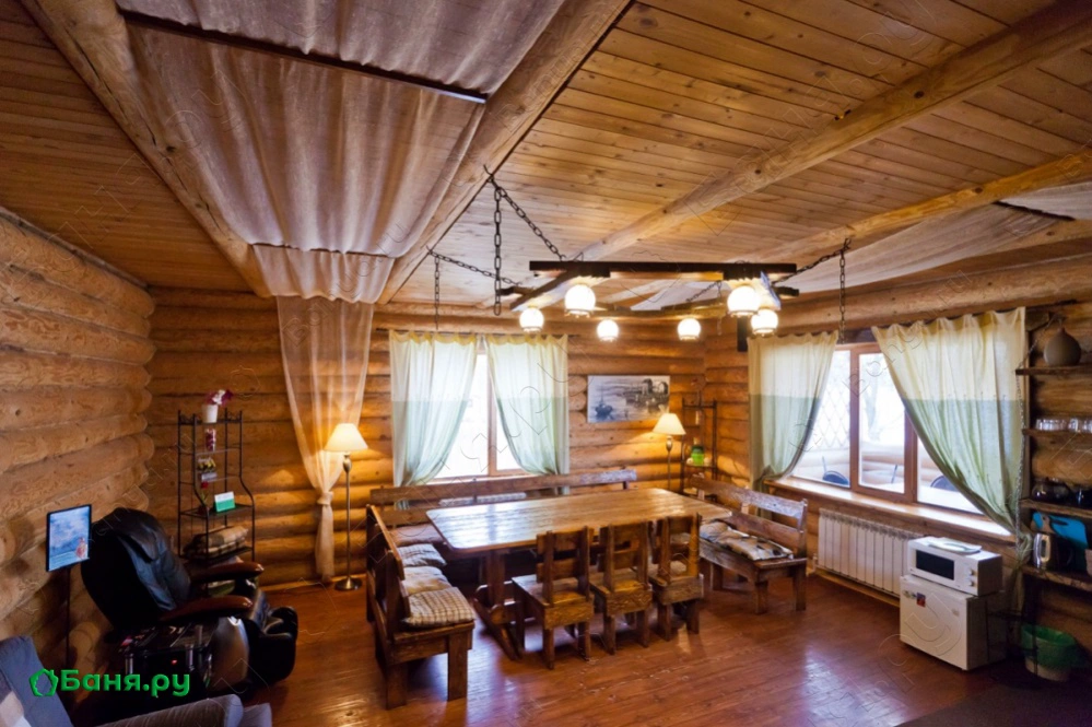 Русский Дом - изба из массивного бревна, с печью класса "Президент", изготовлений из уральского камня Магнезит для ценителей настоящей русской бани на дровах, большим залом, верандой, комфортной барбекю-зоной и выходом к купальне. Русский Дом с баней на дровах в Барбекю-Парке «Зеленый Мыс» — это наилучшее решение для проведения Вашего Дня Рождения, 2-го дня свадьбы и встречи с друзьями! Находясь на нашей веранде — ты паришь над водой! Захотелось на природу подышать свежим коньячком и шашлычком? Удобная Барбекю-зона Русского Дома в ожидании Вашей веселой компании!