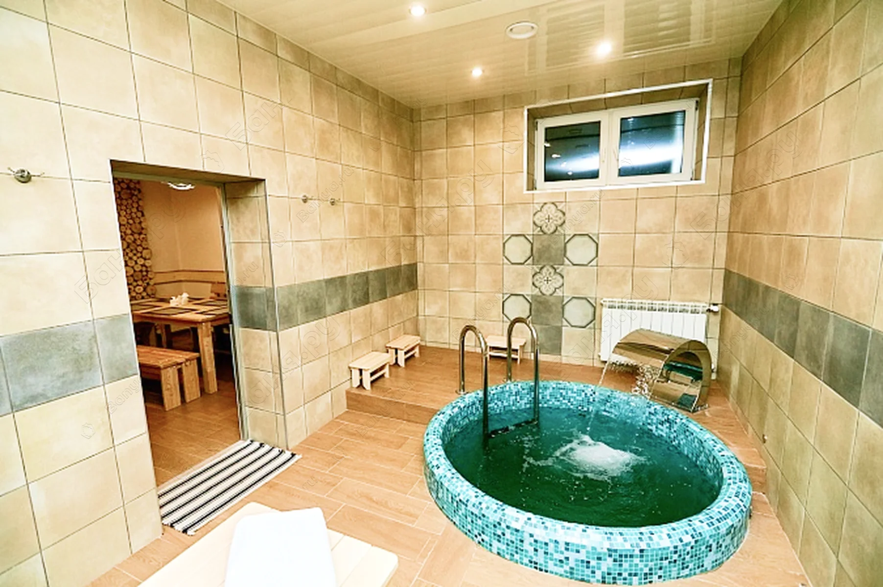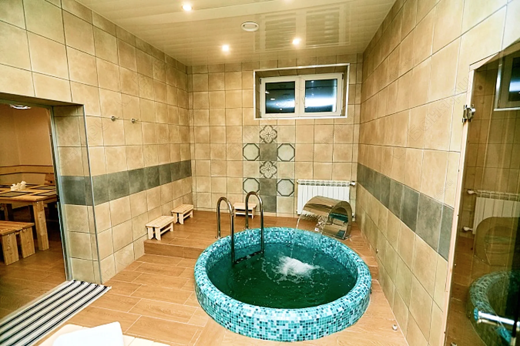 - купель d=1.7х1.7м с водопадом для массажа плечевого отдела и спины