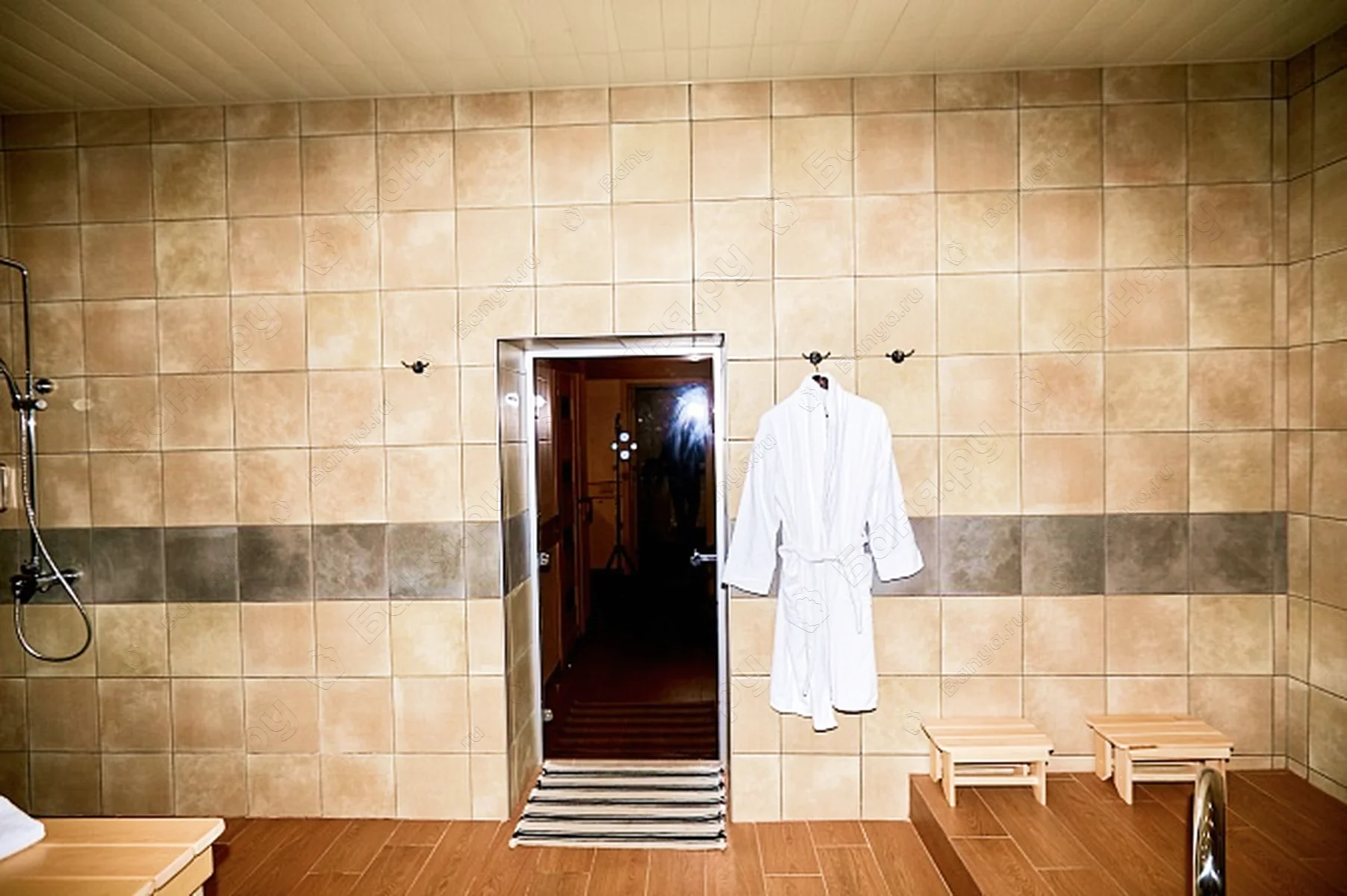 - тумбы с простынями для бани и тапочками