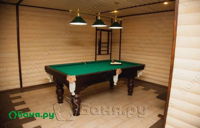 Оформлен в стиле классической русской избы. Потолок и стены обшиты натуральным деревом, которое создает неповторимый микроклимат и атмосферу для отдыха.